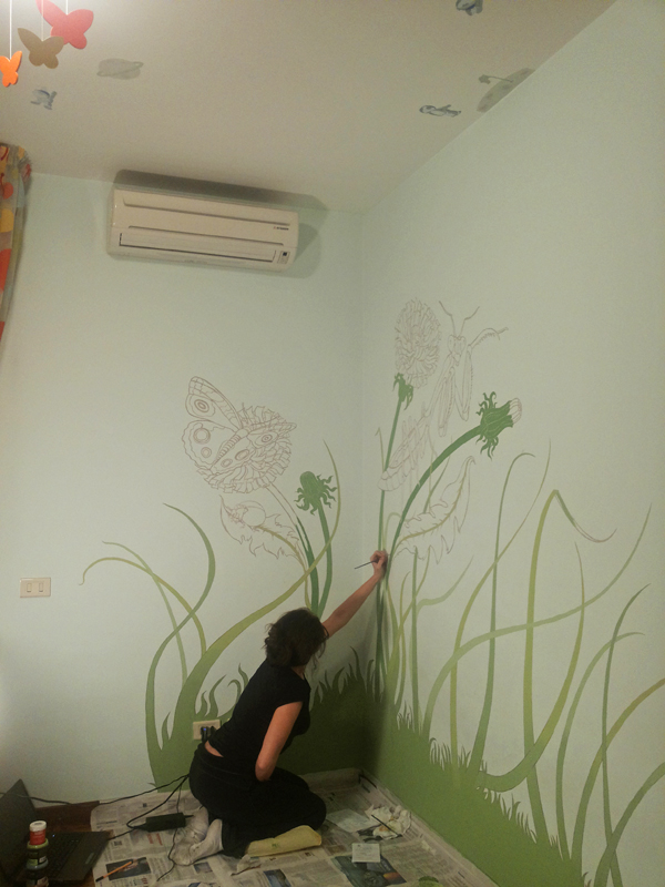 A mural in a room